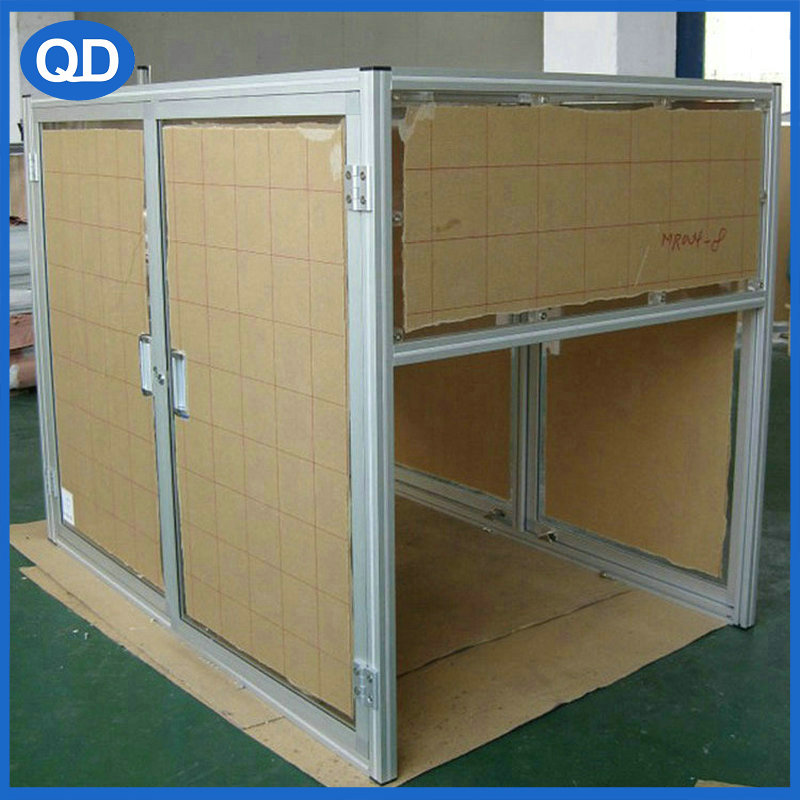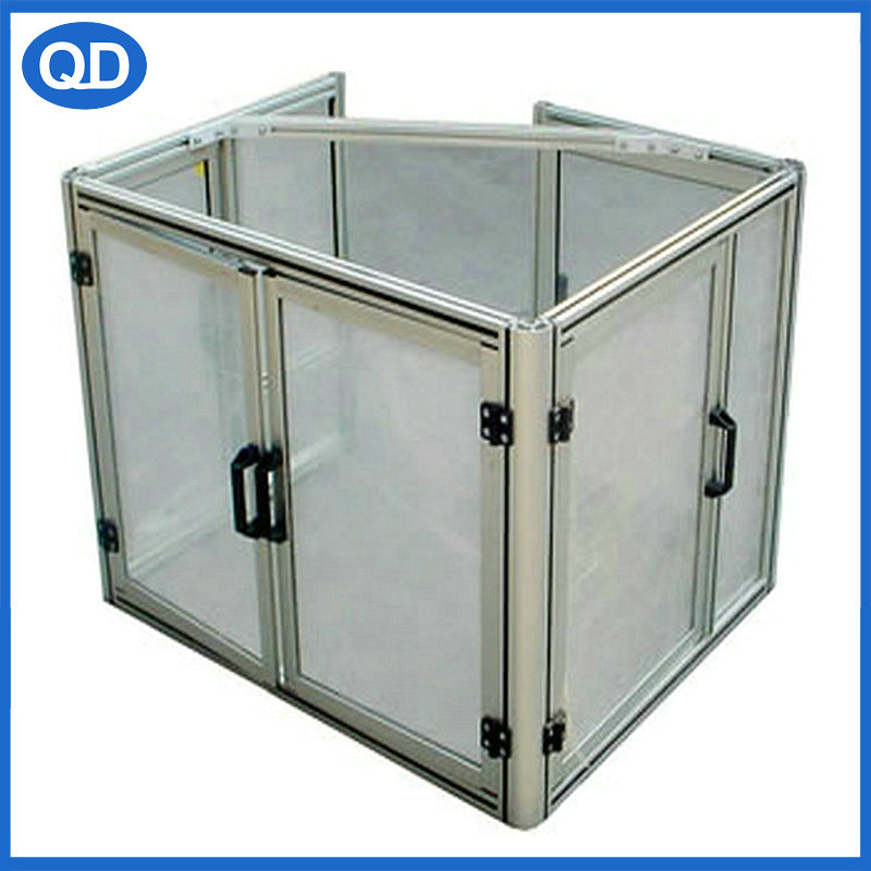 用材:支架采用國標電泳/歐標氧化 工業鋁型材制作,封板可以采用烤漆鐵板/不銹鋼板/有機玻璃/PVC板等制作,配上同系列鋁型材相關配件安裝。